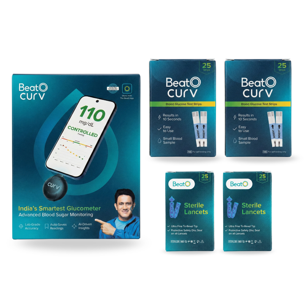 MONITOR & CONTROL DIABETES: BeatO CURV Glucometer helps you easily monitor, manage, and control blood sugar levels at home with expert-backed digital support via the BeatO App.