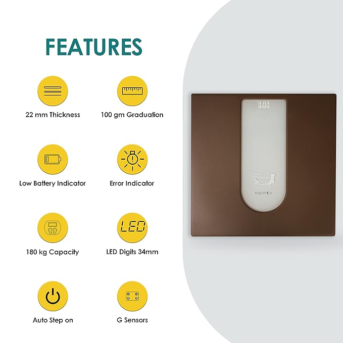 Auto-step-on: The weighing machine has an auto-step-on feature that automatically starts when you step on the scale and you can view the result on the large LED display